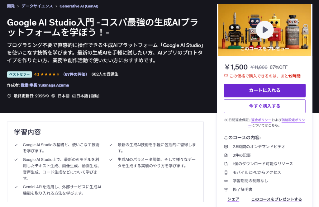 「Google AI Studioって何?と思った人が基本的な理解を定着させるためにおすすめの講座です!」