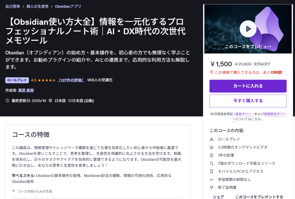 この講座では、Obsidianの基本操作から世界的に有名な情報管理術までを徹底解説しています!