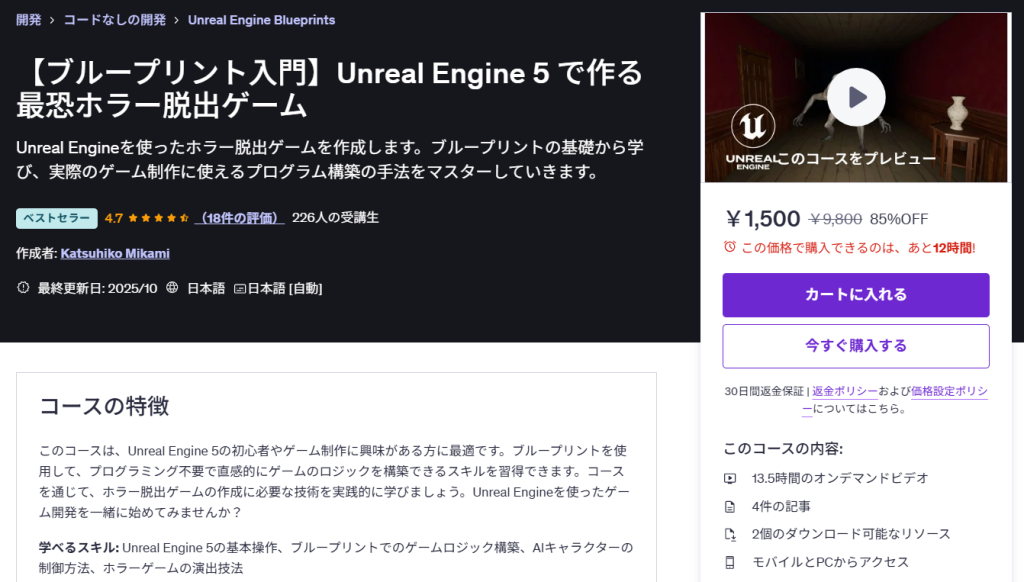 この講座でUnreal Engine 5の基礎からホラー脱出ゲームを完成させるまでを実践的に学び、ゲーム制作の第一歩を踏み出しましょう。