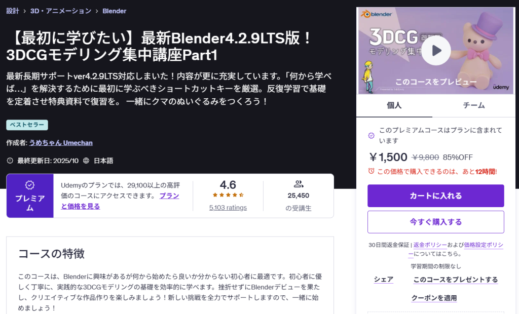 初学者にとって難しそうに見えるBlenderも、この講座なら大丈夫。