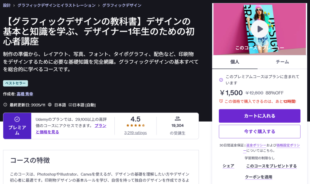「デザイナーはもちろん、デザインに関わる全ての人が一度は学んでおくべきとの口コミが多く評判の講座です!」