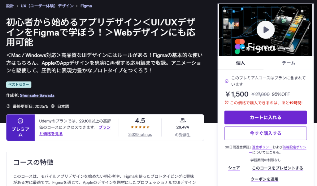 この期間中、数時間~数十時間のオンライン講座が1講座¥1,300~で買えてしまう、年に数回のお得なビッグセールです!!