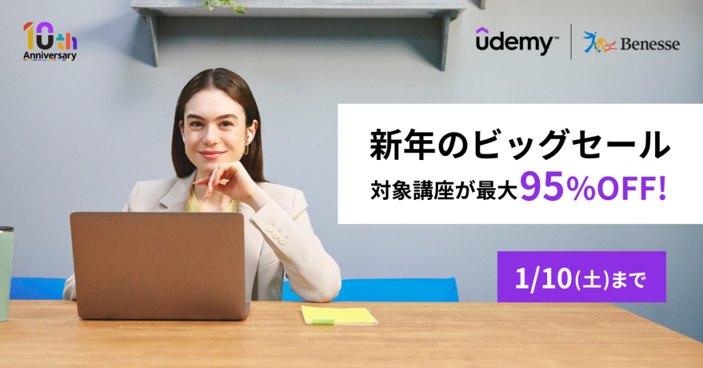 現在Udemyでは、1/2(金)~10(土)で新年のビッグセールを開催しています!