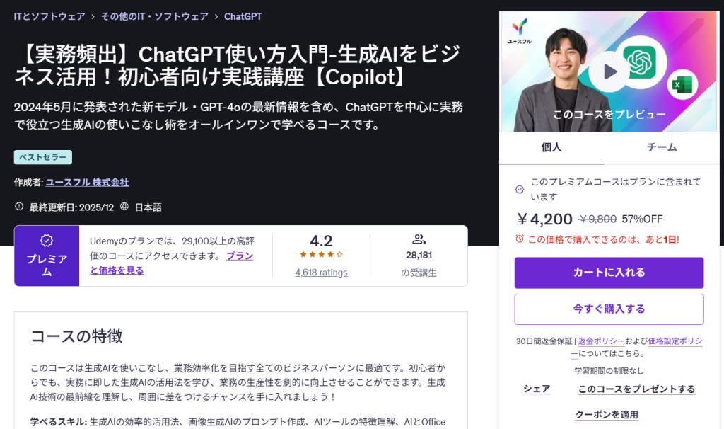 【GPT-4o対応!】ChatGPT使い方入門-生成AIをビジネス活用!初心者向け実践講座【Copilot】
