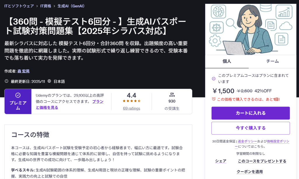 【360問 – 模擬テスト6回分 – 】生成AIパスポート試験対策問題集【2025年シラバス対応】