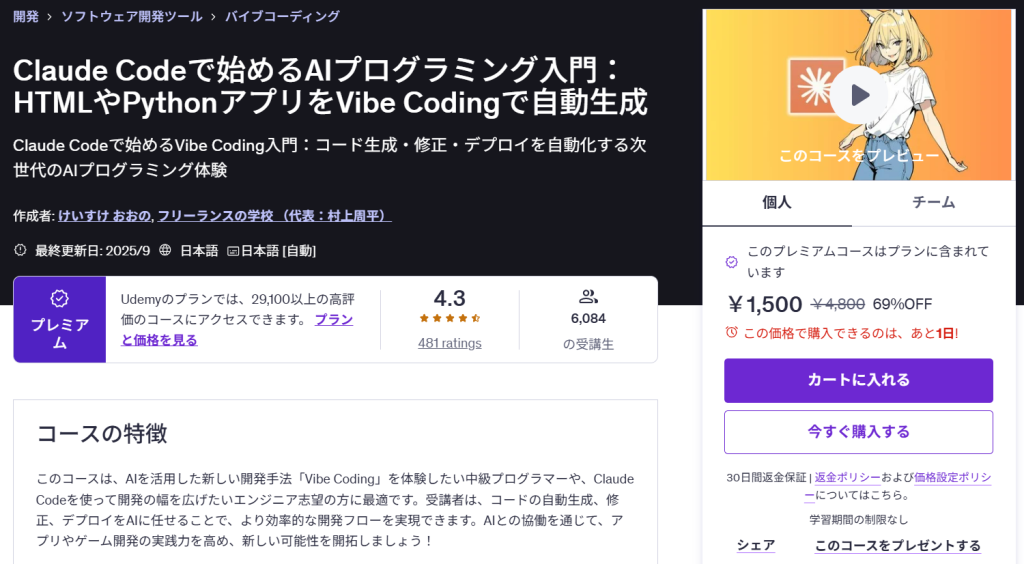 この講座では、Claude Codeを使い、開発の主導をAIに渡す“Vibe Coding”という新しい開発スタイルを体験できます。
