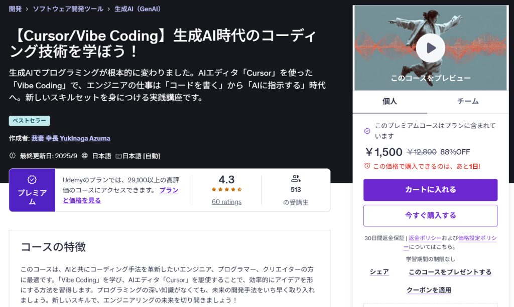 という方に向けて、編集部がさまざまな観点から厳選した生成AI関連のUdemy講座を15個紹介します!