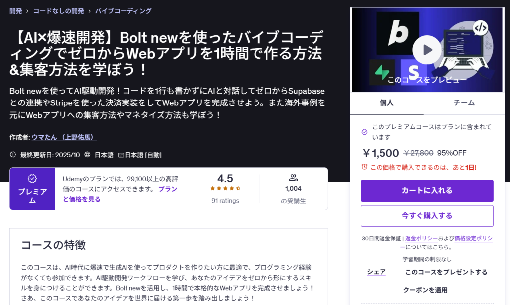 【AI×爆速開発】Bolt newを使ったバイブコーディングでゼロからWebアプリを1時間で作る方法&集客方法を学ぼう!