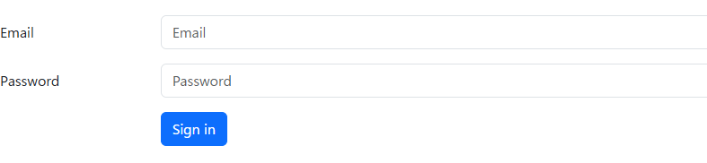 <form> <form> <div class="mb-3"> <label for="exampleInputEmail1" class=”form-label”>Email</label> <input type="email" class="form-control" id="exampleInputEmail1" placeholder="Email"> </div> <div class="mb-3"> <label for="exampleInputPassword1" class=”form-label”>Password</label> <input type="password" class="form-control" id="exampleInputPassword1" placeholder="Password"> </div> <button type="submit" class="btn btn-primary">Submit</button> </form> |